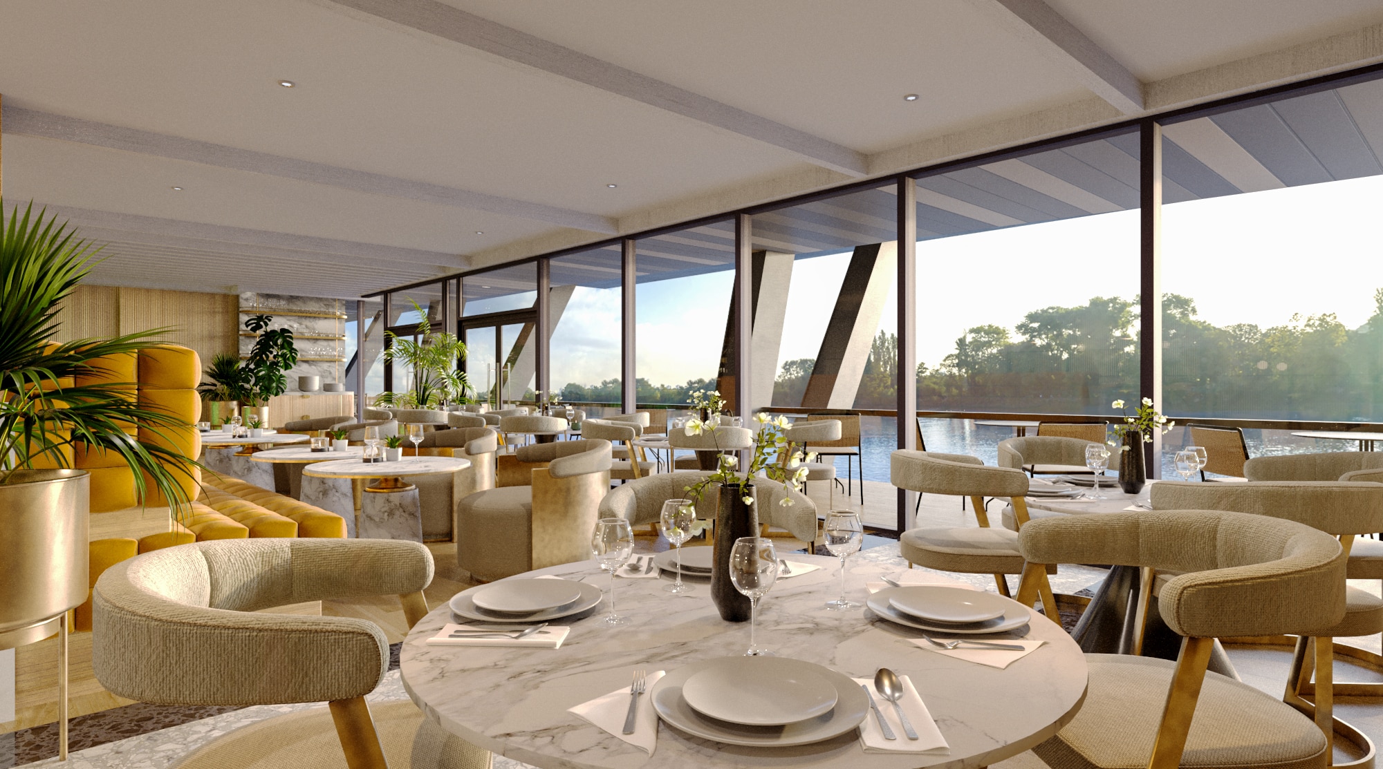 Alongside the creative cuisine comes two exciting perspectives. We have the open-air riverside terrace on one side, and football drama on the other, enjoyed from your luxury