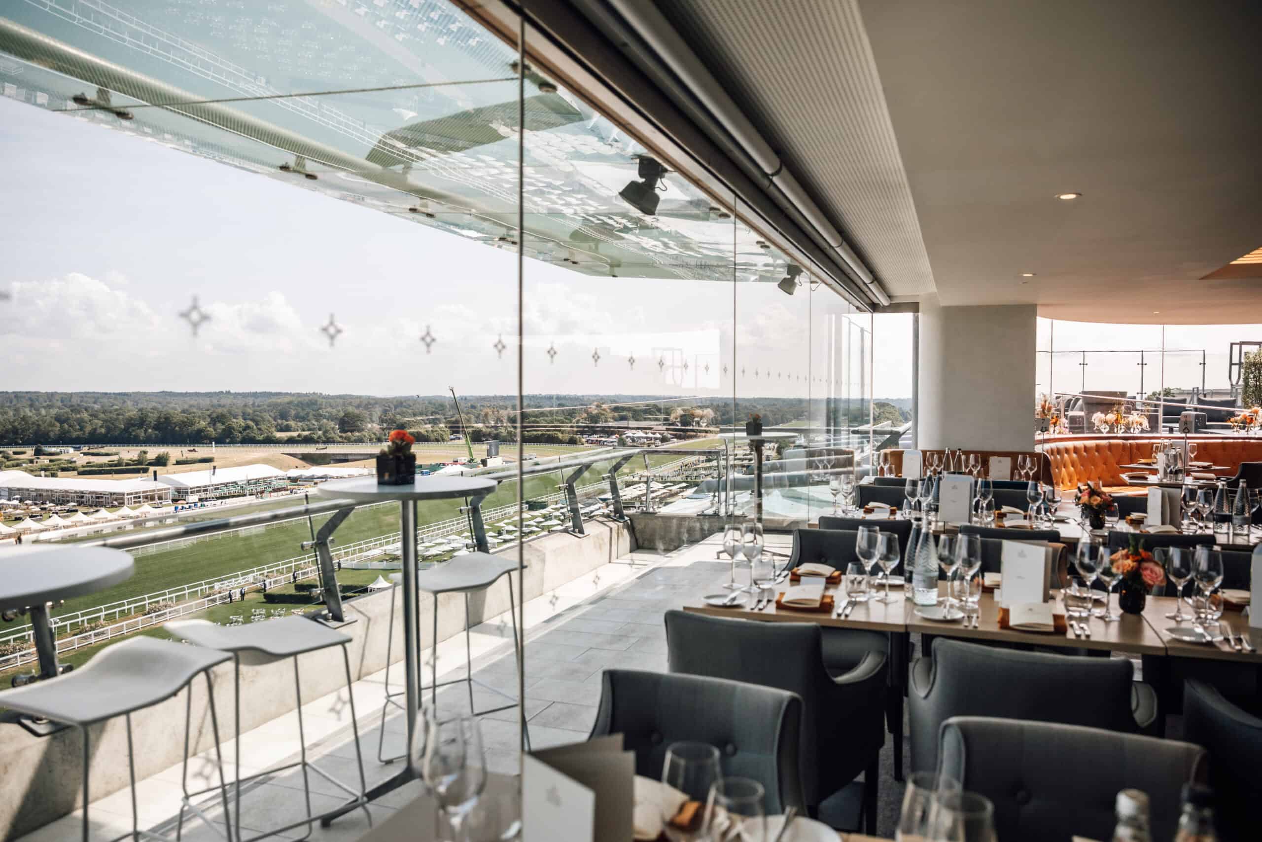 Watch Royal Ascot with ON 5, a fifth-floor glass-fronted restaurant with spacious trackside viewing balcony and roof-top terrace offering spectacular views of the track.